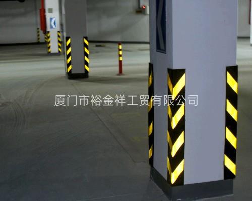 橡膠護角(墻角保護器)用于警示司機及保護柱體和車輛。嵌于停車場隔墻及柱體邊角。顏色為黃黑相間(其中黃色為反光膜)放置在地下停車場的方形立柱上,防止車輛拐彎時,和立柱摩擦或相撞,刮傷或碰傷車漆和立柱。