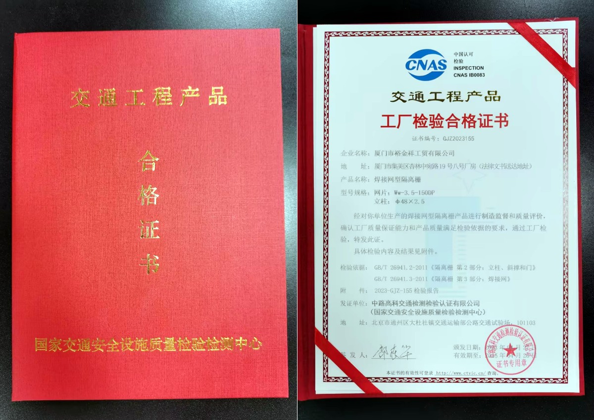 這份證書是由國(guó)家交通安全設(shè)施質(zhì)量檢驗(yàn)檢測(cè)中心頒發(fā)的,只有在符合國(guó)家標(biāo)準(zhǔn)并通過嚴(yán)格的檢驗(yàn)后才能獲得。
