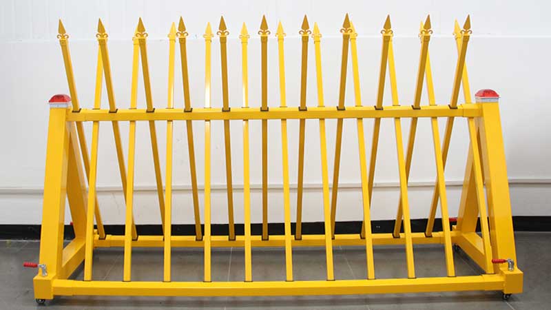 移動(dòng)拒馬的結(jié)構(gòu)設(shè)計(jì),遵循著簡(jiǎn)單而穩(wěn)固的原則。主體通常由橫桿、豎桿和斜撐組成,通過(guò)巧妙的焊接或螺栓連接,形成一個(gè)穩(wěn)定的三角形結(jié)構(gòu)。三角形結(jié)構(gòu)具有極高的穩(wěn)定性,這是力學(xué)原理在實(shí)際應(yīng)用中的完美體現(xiàn),它能夠確保拒馬在受到外力沖擊時(shí),依然能夠保持自身的形狀和位置,不輕易發(fā)生變形或倒塌。底部一般會(huì)安裝帶有剎車(chē)功能的萬(wàn)向輪,這些輪子就像是拒馬的 “腳”,賦予了它靈活移動(dòng)的能力,同時(shí)剎車(chē)功能又能在需要時(shí)將拒馬穩(wěn)穩(wěn)地固定在原地,確保其在使用過(guò)程中的安全性。