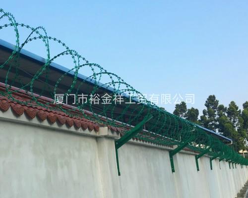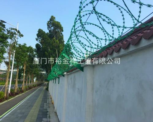 刀片刺網由熱鍍鋅鋼板或不銹鋼薄板沖壓出尖銳的刀片狀,高張力鍍鋅鋼絲或刀片刺繩者不銹鋼絲做芯線組合而成的阻絕器材。由于刺網造形獨特不易觸摸,因而能達到很好的防護隔離效果。